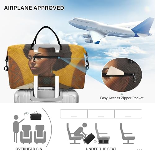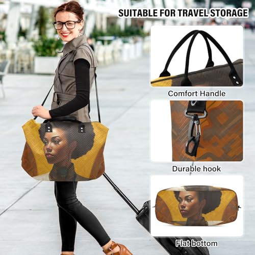 Large Travel Duffel Bag, Afro American Woman Sports Tote Gym Bag, Shoulder Weekender Overnight Bag for Women Men, Carry On Luggage with Toiletry Bags 6