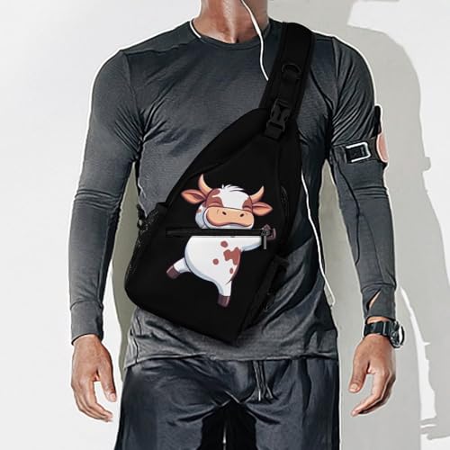 Cute Cow Dancing Crossbody Sling Backpack Casual Chest Bag Fanny Pack for Women Men Travel Hiking