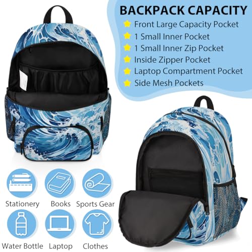 TropicalLife Sea Wave Backpack with Lunch Box Set, Back Pack and Lunch Bag Sea Wave Waterproof Casual Daypack Bag for Work Travel 6