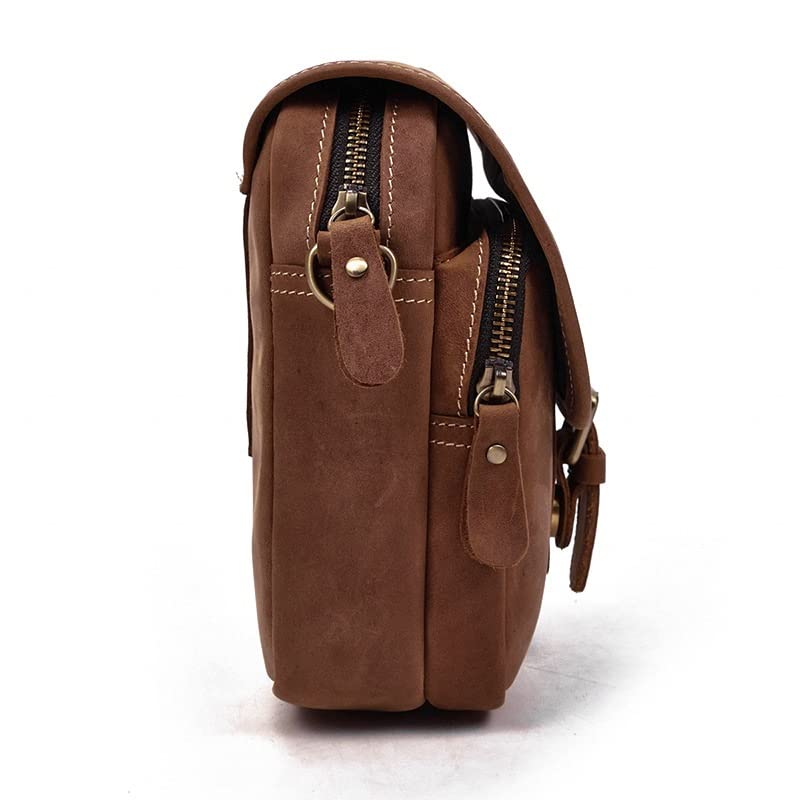 Shoulder Bag,Men's Genuine Leather Shoulder Bag Messenger Briefcase Crossbody Handbag Satchel Travel Bag (Color : Brown-A, Size : 16 * 8.5 * 20cm)