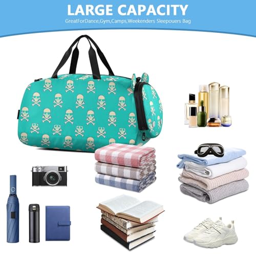HOT ! Colored Skulls Youth Sports Duffel Bag with Ventilated Shoe Compartment|All-Season Lightweight Travel Gym Bag for Girls & Boys|Water-Resistant Gear Bag
