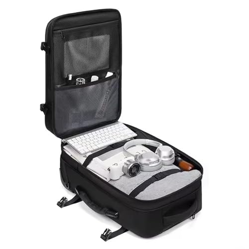 • Versatile Design: Combining a backpack and wheeled suitcase, this travel bag offers the convenience of both carry-on and checked luggage options.This backpack saves you the trouble of checked baggage. You can carry this vacuum packaging backpack directly on the plane, saving time and worry. It saves you the trouble of pulling a trolley case, but it is more functional than a trolley case