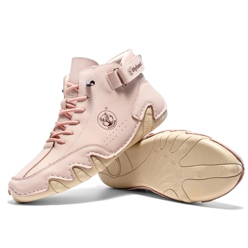 FLYLAND Women's Casual Leather Fashion Sneakers Handmade Ankle Chukka Boots Lightweight Slip-On Loafers Walking Driving Shoes 1