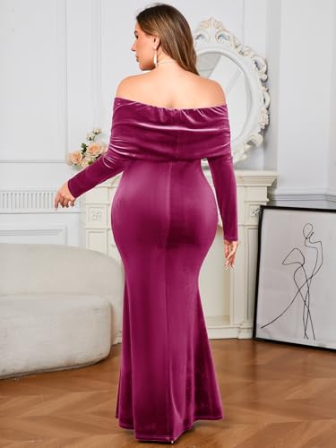 ZOMVA Plus Size Off Shoulder Velvet Dress Long Sleeve Mermaid Bodycon Maxi Evening Gown for Cocktail Party Wedding Guest 6