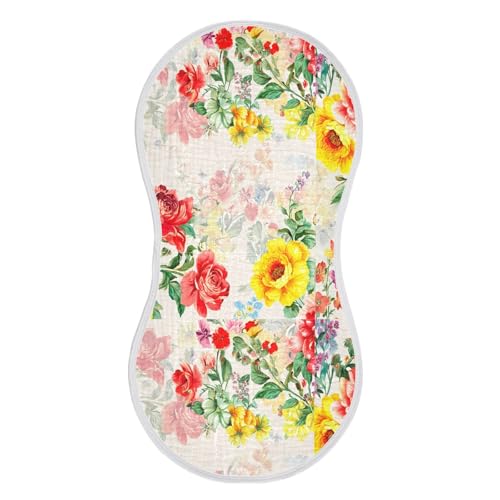 J JOYSAY Rose Peony Blossom Beige Baby Burp Cloths for Boys Girls Large 22''x11'' Cotton 4 Layer Newborn Towel for Drool one sizex4 6