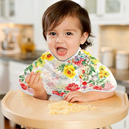 J JOYSAY Rose Peony Blossom Beige Baby Burp Cloths for Boys Girls Large 22''x11'' Cotton 4 Layer Newborn Towel for Drool one sizex4 7