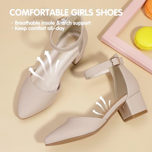 Hehainom Girls Dress Shoes High Heels Sandals Ankle Strap Flower Girl Little Big Kid Mary Jane Wedding Party Communion Mily Pump Shoes