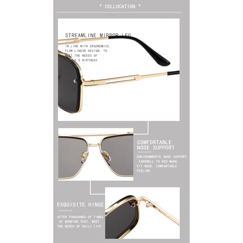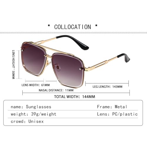 Upliftjoys Sunglasses, Retro Gradient Sunglasses Uv400 Protection, Double Bridge Cut Edge Metal Square Frame Sunglassess