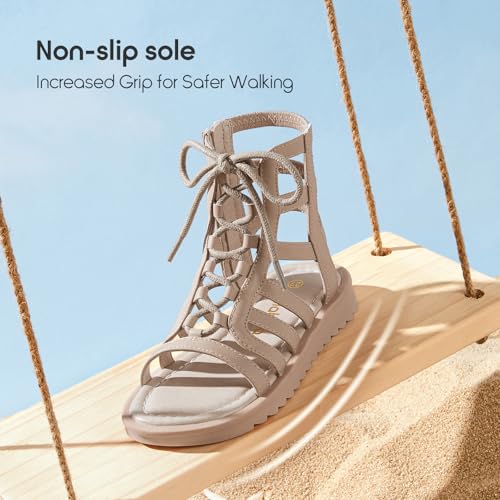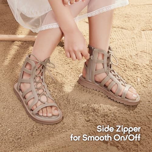 Balabala Girls Sandals Gladiator Fisherman Ankle Strap Flat Sandals with Side Zipper Closure, Casual Beach Sandals for Daily Wear and Summer 6