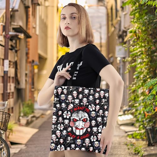 LEVLO Sadistic Thriller Tote Bag Horror Movie Fans Gift I Want To Play A GamePuzzle Horror Shoulder Bag Horror Movie Merch
