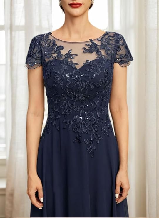 More information about Mother of The Bride Dresses for Wedding Tea Length Short Sleeves Lace Chiffon Formal Dress for Women