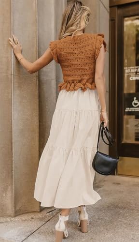 Women’s 2025 Summer Causal Ruffle Sleeve Crochet Knit Tops Long Dress for Ladies Fall Trendy Tiered Dress 2