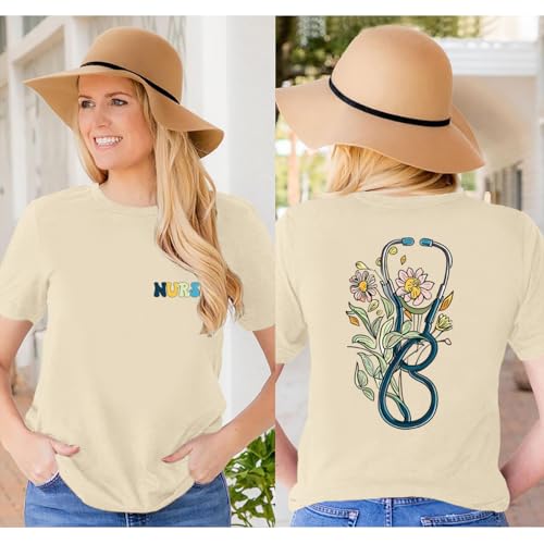 HOT ! Nurse Graphic Shirts for Women Boho Floral Nurse Life T Shirt Stethoscope Oversized Graphic Tees Nurses Day Gifts