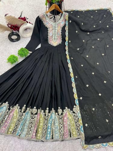 HOT ! Vaidehi craft Women's Chinon Silk Multi thread Embroidered Anarkali Kurti With Dupatta Set
