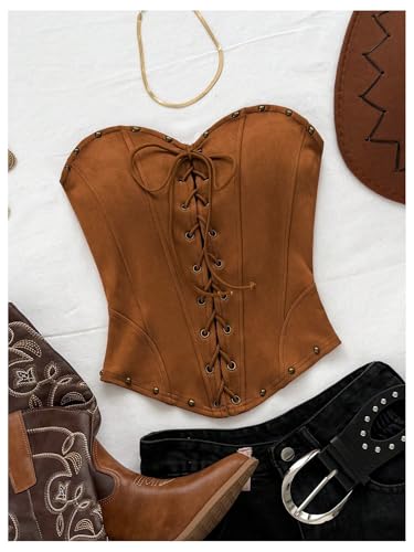 More information about SOLY HUX Women's Faux Suede Tube Tops Lace Up Strapless Sleeveless Bandeau Summer Going Out Corset Crop Top