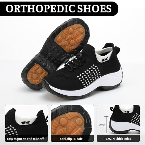 • 【Breathable Mesh Upper 】 Crafted with a flexible knit mesh upper, these women’s orthopedic sneakers promote airflow and reduce sweat buildup, offering a cool, lightweight fit that’s good for walking, bowling, or everyday wear