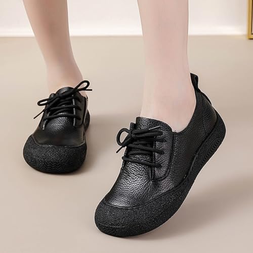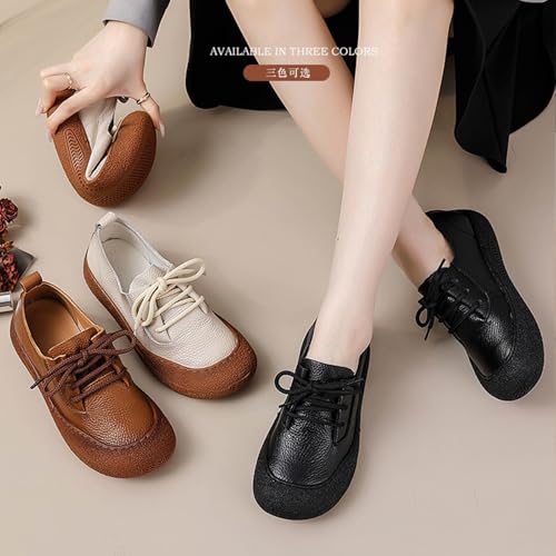Women's Vintage Wide Toe Box Leather Flats,Comfortable Orthopedic Soft Sole Lace Up Casual Dressy Walking Shoes 6
