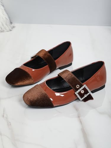 Why Choose Women's Flat Mary Jane Shoes with Suede Cap Toe Dress Leather Ballet Flats with Square Rhinestone Buckle Comfortable Slip On Work Office Ankle Strap Flats?