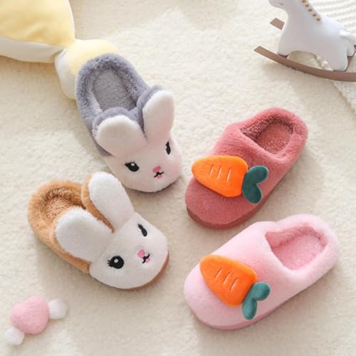 Boys Girls Plush Bunny Slippers Cute Cartoon Non-Slip Fleece Slippers Fall Winter Warm Soft Cozy Indoor Sandals 6