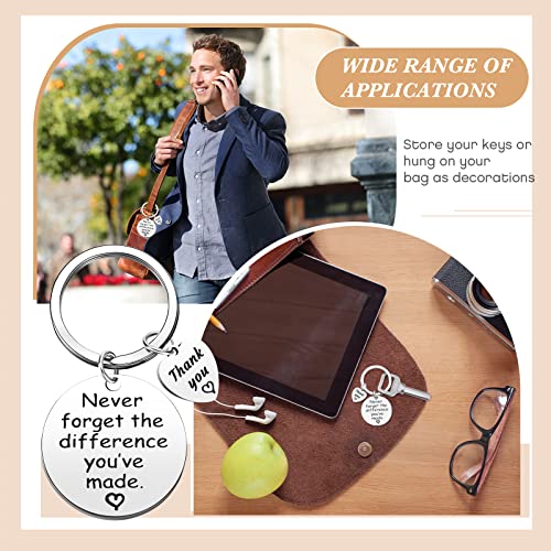 Thank You Gifts Set: you will receive 12 pieces of thank you keychains in bulk, 12 pieces of small thank you gift bags, 12 pieces of thank you tags, a nice combination set to satisfy your gift sending demandsQuality and Reliable Material: the thank you keychain employee is made of quality stainless steel material, stable in structure, not easy to break, deform or fade, these thank you bags small size are made of quality fabric, and the thank you tag is made of quality paper material, reliable and serviceable, serving you for a long timeSize Details for Your Reference: the teacher appreciation keychain is about 30 mm/ 1.18 inches in diameter, these thank you drawstring bags are about 9 x 12 cm/ 3.54 x 4.72 inches, and these thank you tags for favors are about 2 x 7 cm/ 0.79 x 2.76 inches, a proper size for you usingInspirational Design: the appreciation keychain is engraved with inspirational words [Never forget the difference you've made] and [thank you], decorated with love heart patterns, ideal for you to express your sincere appreciation to someoneVersatile Performances: these appreciation gifts are ideal for you to send to your employees on various occasions, such as Thanksgiving, Christmas, Halloween, New Year, to show your love and appreciation to them, innovative and meaningful Perfect for everyday use. High quality materials and excellent craftsmanship ensure long-lasting durability.