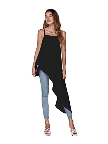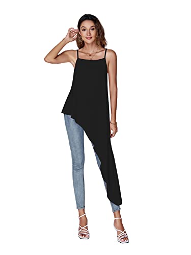 HOT ! Umenlele Women's Square Neck Spaghetti Strap Sleeveless High Low Loose Fit Cami Top