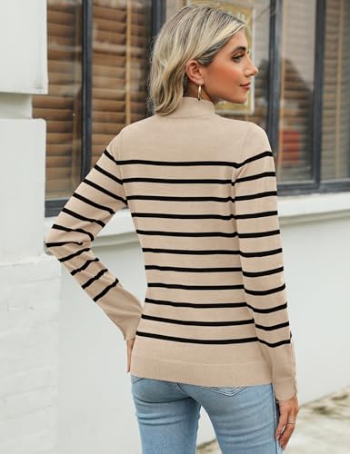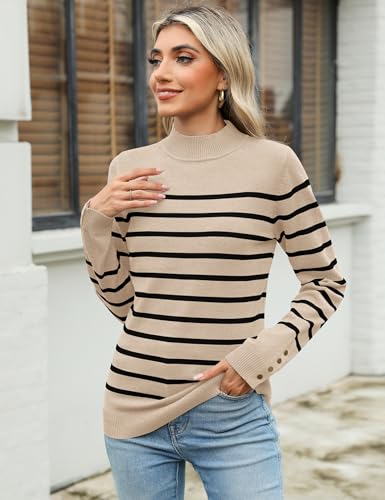 • DESIGN : Fall pullover sweater women features mock neck, long sleeve and button cuffs, solid color & striped, nice hem length and soft knit design. Women's long sleeve jumper is comfy and flattering, at the same time, design is simple and stylish, perfect as a basic sweater top