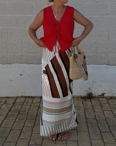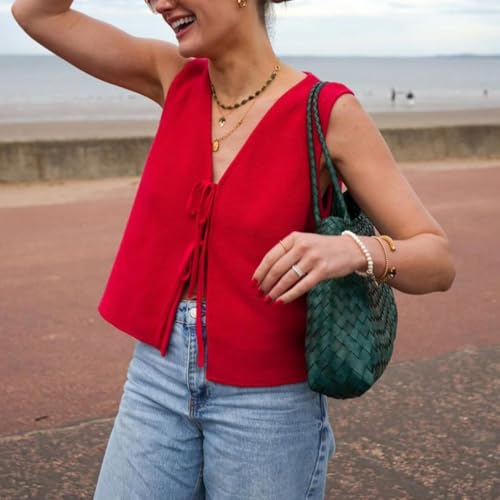 Womens Tie Front Sweater Vest Knit V Neck Lace Up Sleeveless Cardigan Casual Knitted Vest