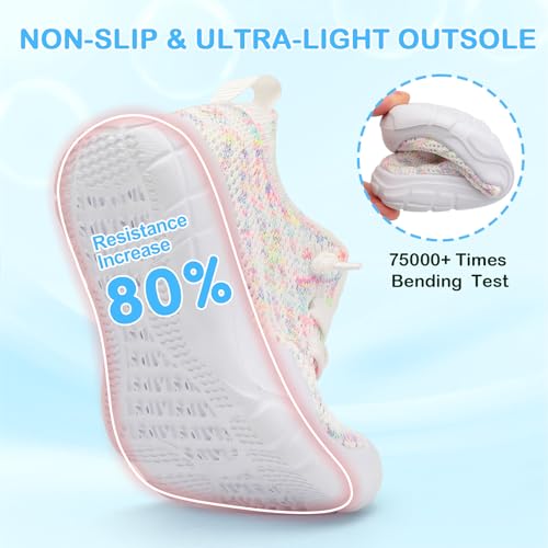 • Upper: Kint mesh upper with excellent breathable and quick-dry ability. Ultralight and stretchable mesh upper just like socks, adjust to fit kid’s feet to make kids feel great freedom and comfort in wearing