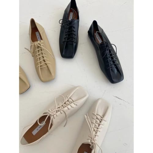 HOT ! Ballet Flats for Women Leather Ballerina Shoes Square Toe Mules Lace Up Comfy Soft Cushioned Insole Stylish Casual Work