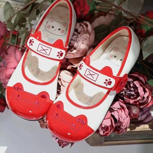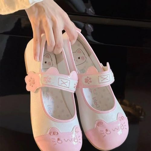 ZQW Women's Cute Kitten Mary Jane Flats Kawaii Sweet Round Toe Low Heel Comfort Casual Dressy Ballet Shoes Lolita Cosplay 6