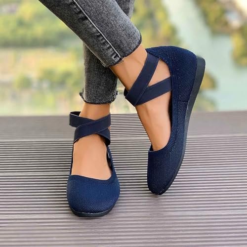 HOT ! Women's Casual Ballet with Elastic Straps Comfortable Round Toe Slip On Shoes for Daily Wear Dressy Outfits