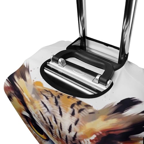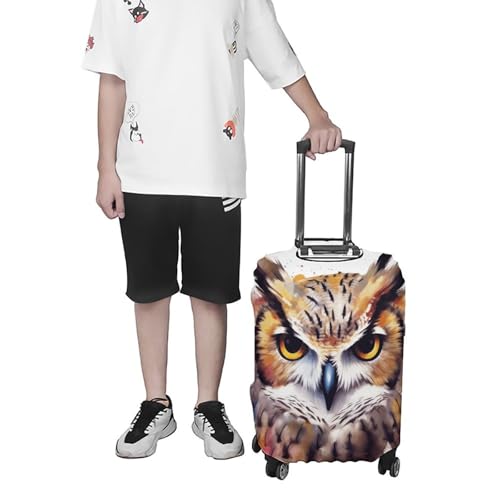 Elasticity Material: Made from premium stretchy polyester fabric, this Watercolor Cool Owl Head travel luggage cover fits snugly over various suitcase sizes, offering robust protection and extending the life of your luggage.Luggage Cover Protector: Our anti-scratch luggage cover protects your suitcase against dirt and scratch. The colorful cover also helps you find your luggage quickly.Unique Design of Luggage Covers for Suitcase: 2 openings at the top for telescoping handle and carrying handle, both sides have zippers for side handles. The unique design makes you easy to fit and remove.Size and Color: 4 sizes available to fit almost any luggage. size s: fit 19-21 inch luggage; size m: fit 22-24 inch luggage; size l: fit 26-28 inch luggage; size xl: fit 30-32 inch luggage.Do Not Worry Lose Luggage at Airport Again: This personalised luggage cover is perfect for holiday travel, and its stylish design will also help you find and claim your luggage quickly at the airport. Perfect for everyday use. High quality materials and excellent craftsmanship ensure long-lasting durability.