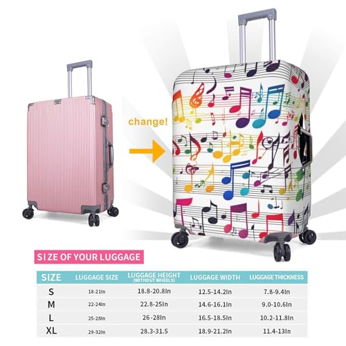 Colorful Music Notes Print Personalized Travel Luggage Cover With Zipper, Elastic Luggage Cover,For Daily Use 5