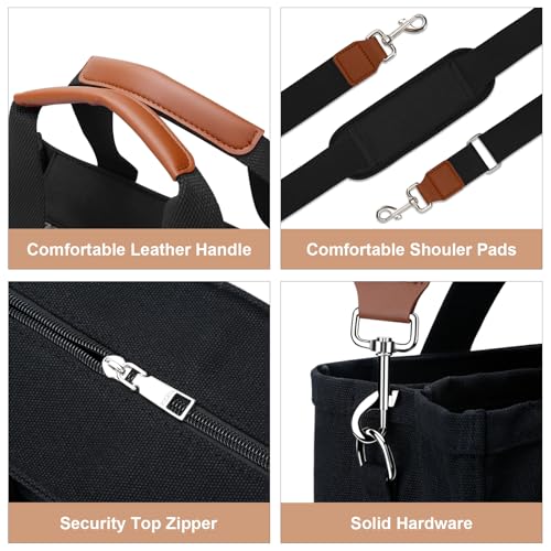 KKXIU Canvas Tote Bag for Women with Zipper and Compartments Crossbody Large Bible Messenger Purse Bag With Pockets 6
