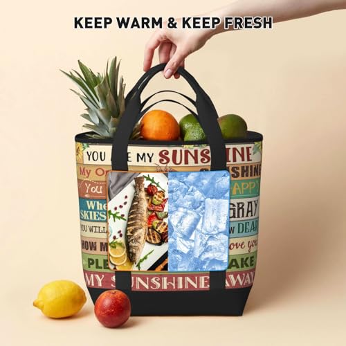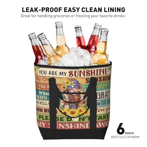 Hippie Sunflower You Are My Sunshine Premium Insulated Tote Bag – Heavy-Duty Handles, Perfect For Supermarket Trips, Picnics & Daily Commute