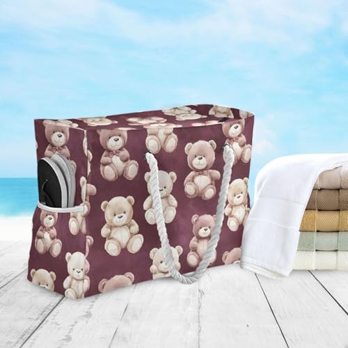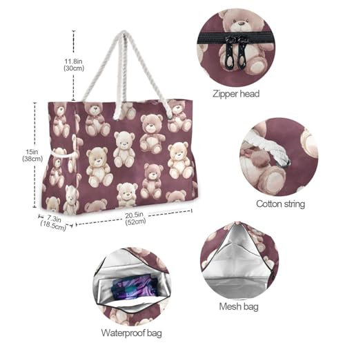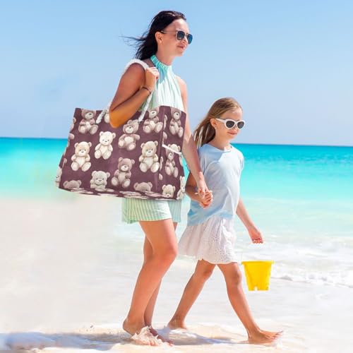 HOT ! Bears Beach Bag & Travel Tote Bag Large Sandproof with Zipper Closure, Wet Pouch for Swim Gym Travel, Lightweight Foldable Outdoor Bag