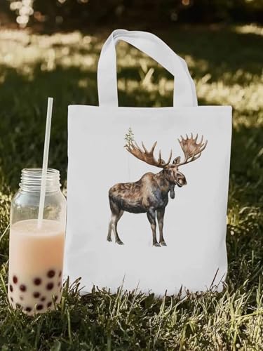 HOT ! Canvas Tote Bag, Grey Vintage Moose Aesthetic Canvas Tote Handbags for Women Shoulder Bag, Retro Animals Elk