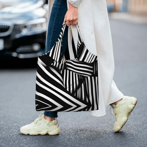 HOT ! Black and white geometric lines Printed Shoulder Bag - Suitable for sturdy canvas bags, shopping bags