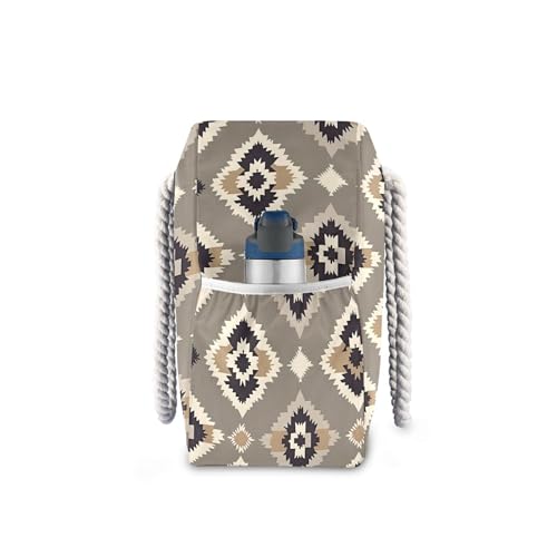 MNSRUU Large Beach Bag for Women, Dark Brown Plaid Tote Travel Gym Swim Bag 6