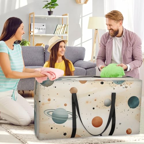 Artistic Galaxy Extra Large Moving Bags Heavy Duty Storage Bags Watercolor Galaxy Cloth Wrap Around Handles Double Zipper Reusable Convenient Foldable Storage Tote for Travel Camping Space Save 6
