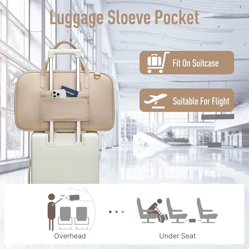 3 Pcs Set Carry on Bags:The travel dufflle bag for women comes with 1 crossbody bag, 1 toiletry bag.These sets can keep your personal items organized.This travel bag roomy space can even fit in 3-5 days of daily essentials,easily fit into your clothes, toiletries, laptop, Ipad and other items.Airplane Friendly Carry On Bag:The overnight bags for women size is 20*7.8*12.8 inch,our weekender bag for women meets most international carry-on requirements. Fits in the overhead compartment as well as the under seat as Personal Items in flight.This overnight weekend boarding bag is perfect for your personal travelDurable Construction and Stylish Design:The duffle bag for travel is crafted with high-quality faux leather material and paired with smooth zippers, the lining is made of polyester. Our bag comes with a removeable adjustable padded shoulder strap for comfort, as well as two attached handles that are also rounded and very comfortable on the hand.Large Capacity and Multifunctional Structure:The fully open design facilitates the flat placement of clothing, maximizes space utilization.Our travel bag for women s designed with 5 compartments, capacity: 40L,.It maximizes storage capacity,This travel bag has been designed to keep everything you need.Wide Application Duffle Bag: If you're looking for a beautiful travel bag, it would be a great option.Back side sleeve allows you to slide it over rolling suitcase luggage roller bag handles, and there also with a zip pocket to keep your passport and phone for easy access. Whether you're heading to the gym, planning a weekend getaway, or going on a business trip, is ideal for a variety of purposes. Perfect for everyday use. High quality materials and excellent craftsmanship ensure long-lasting durability.