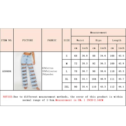 HOT ! Women's High Waisted Stretch Y2k Jeans Trendy Washed Ripped Cutout Straight Leg Denim Pants