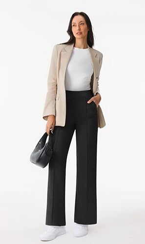AFITNE Women's Wide Leg Work Pants High Waist Pull On Business Casual Pants Lightweight Lounge Slacks with Pockets 29"/31"