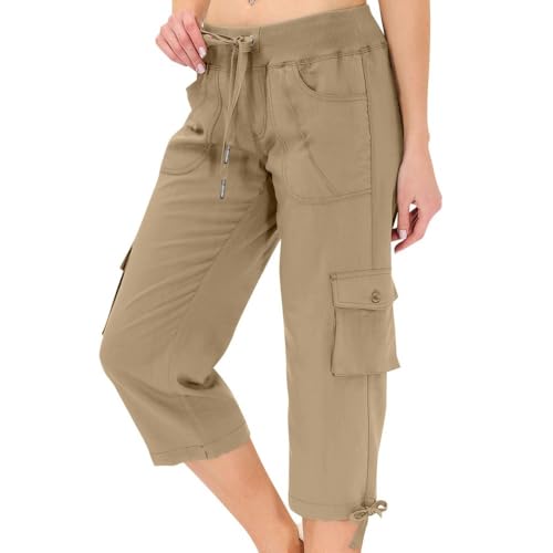 HOT ! Women's Cargo Capris with Pockets, Lightweight Quick Dry Hiking Pants, Casual Summer Drawstring Cropped Joggers