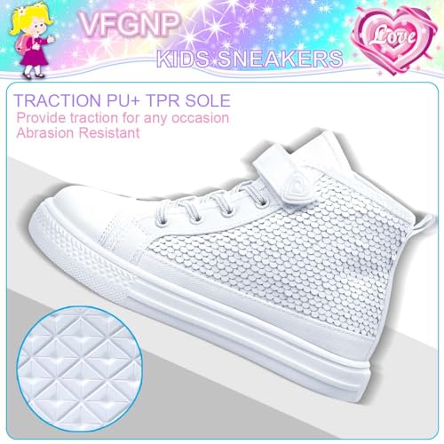 Sneakers for Girls, Kids Cute Fashion High Top Casual Canvas Sequin Shoes-(Pk/Pur/Bla/WHI)