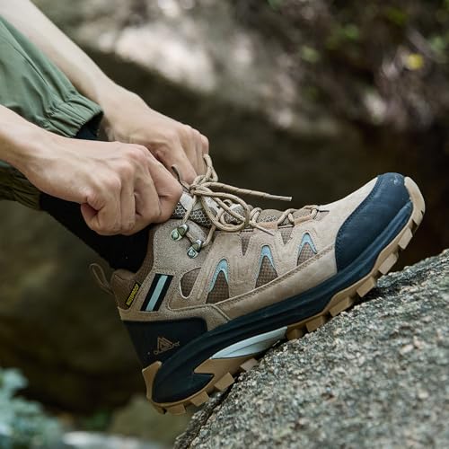 Queday Mens Womens Leather Waterproof Hiking Boots Lightweight Outdoor Walking Shoes Breathable Suede Hike Trekking Trails Camping Climbing 5