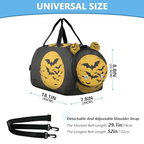 Duffle Bag for Boys or Girls with Shoes Compartment, Night Moon Bat Sports Travel Bag Overnight
