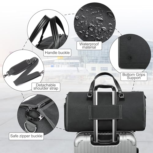 Convertible Garment Bag with Shoulder Strap, Carry on Duffel Bag Waterproof Garment for Men Women - 2 in 1 Hanging Suitcase Suit Travel Bags with Shoe Pocket