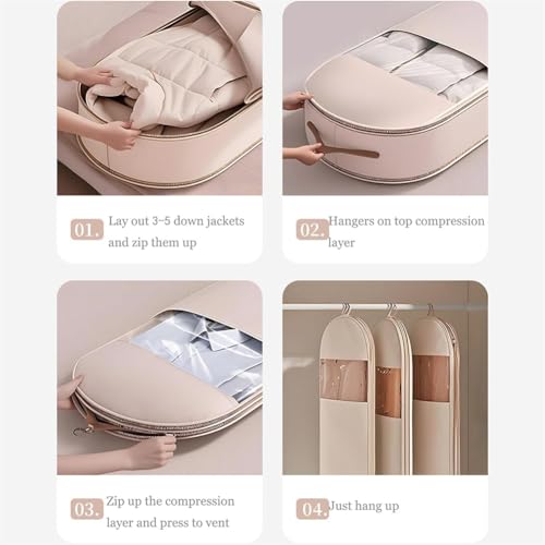 Space Saving Hanging Garment Bag with Self Compression Zipper, 2025 Upgrade Space Saver Closet Organizers, 1/2/3/4/5/6Pcs Self Compression Zip Garment Bags (5Pcs Beige,51IN)