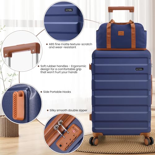 HOT ! Hoteel 3 Piece Carry on Luggage Sets with Spinner Wheels, ABS Hard Shell Suitcase with TSA Locks, 20 Inch Lightweight Luggages for Travel, Dark Blue(BP/TB/20)